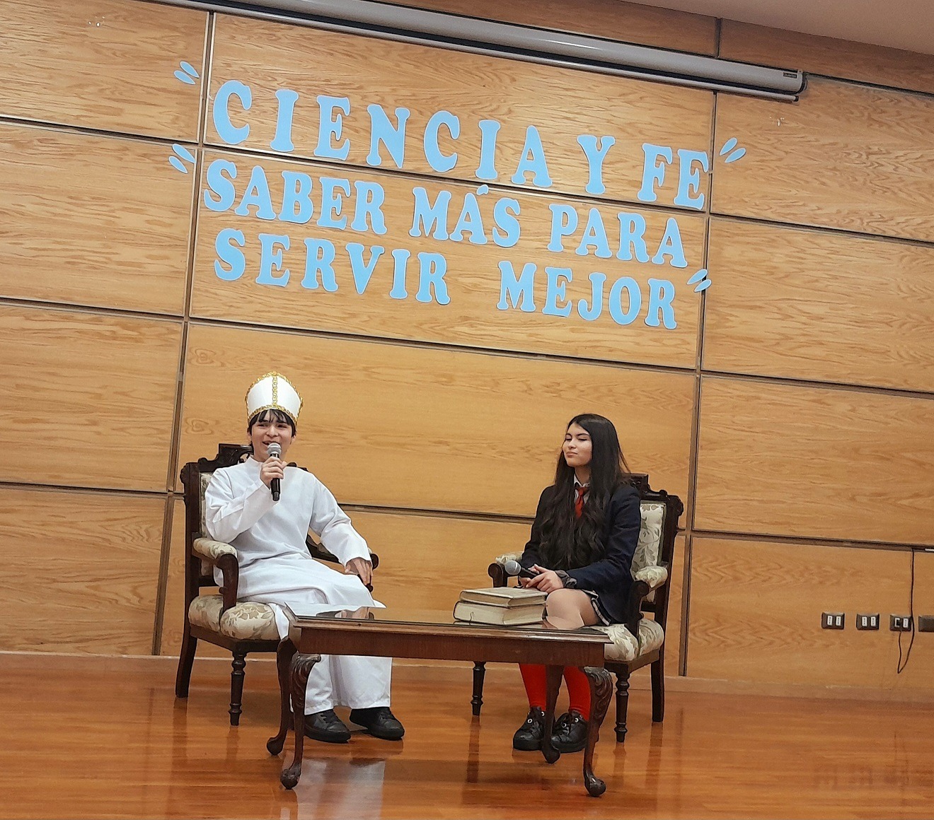 Actividad Departamento de Ciencias El día 8 de octubre se desarrolló la actividad de cierre en torno a la semana “De la Ciencia y la Fe”. El encuentro realizado en el auditorio de nuestro establecimiento, donde participaron alumnos, docentes y directivos, presentó mediante la puesta en escena varios momentos históricos donde hombres y mujeres que procesaban la fe en Cristo, realizaron a su vez importantes aportes al mundo de la ciencia en siglos pasados. Dicha presentación y las actividades previas fueron realizadas por los estudiantes, quienes contaron con la guía y orientación de los docentes de la asignatura, nuestras felicitaciones para ellos. 1000054616 Image 6 De 7