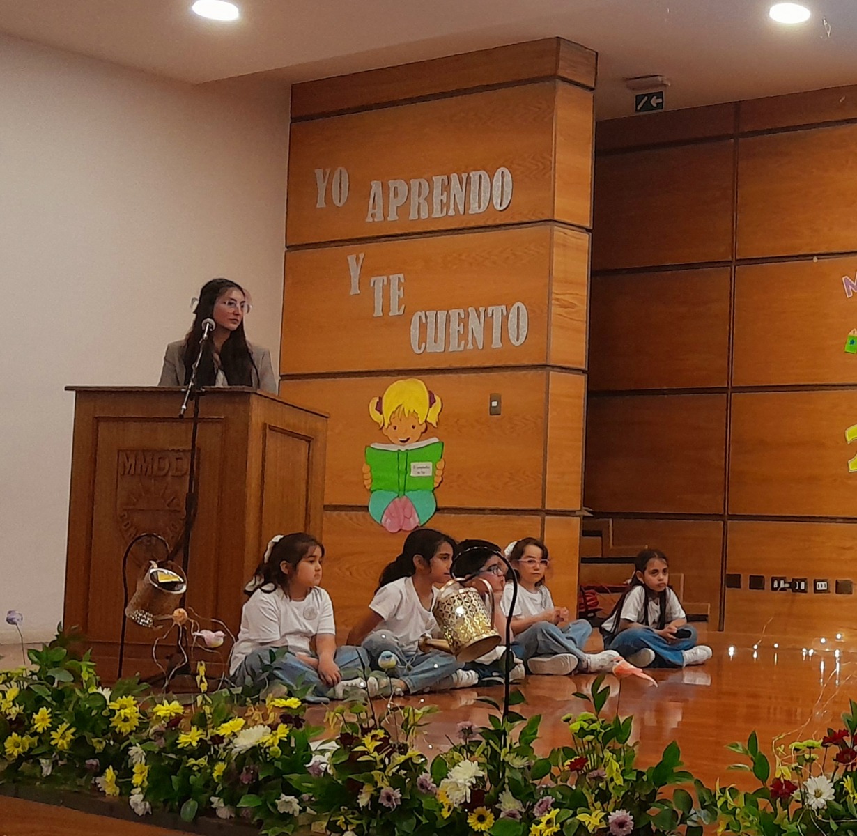 Ceremonia 1° año básico “Yo aprendo y te cuento” Ceremonia 1° año básico “Yo aprendo y te cuento” El día 27 de noviembre se realizó en el auditorio de nuestro establecimiento la ceremonia “Yo aprendo y te cuento”, en la cual participaron los alumnos de 1° año básico A y B acompañados de sus profesoras jefes: Camila Godoy y Belén Fuentes. En la ocasión se llevó a cabo un sentido reconocimiento al esfuerzo y dedicación de los estudiantes por avanzar en el aprendizaje de la lectura. Dicho proceso conforma un hito en la trayectoria escolar de cada uno de los alumnos, quienes utilizando la lectura como herramienta podrán acceder a diversas áreas del ámbito educativo como la literatura, la ciencia y las artes. En la ceremonia participaron también los padres y apoderados quienes con orgullo presenciaron el ejercicio lector adquirido por sus hijos, quienes en la ocasión leyeron diversos textos de asignaturas escolares. La ceremonia finalizó con nuestros estudiantes entonando la canción “Carnavalito de cien pies” de la autora chilena Carmen Lavanchy. 20251127_121145 Image 8 De 20