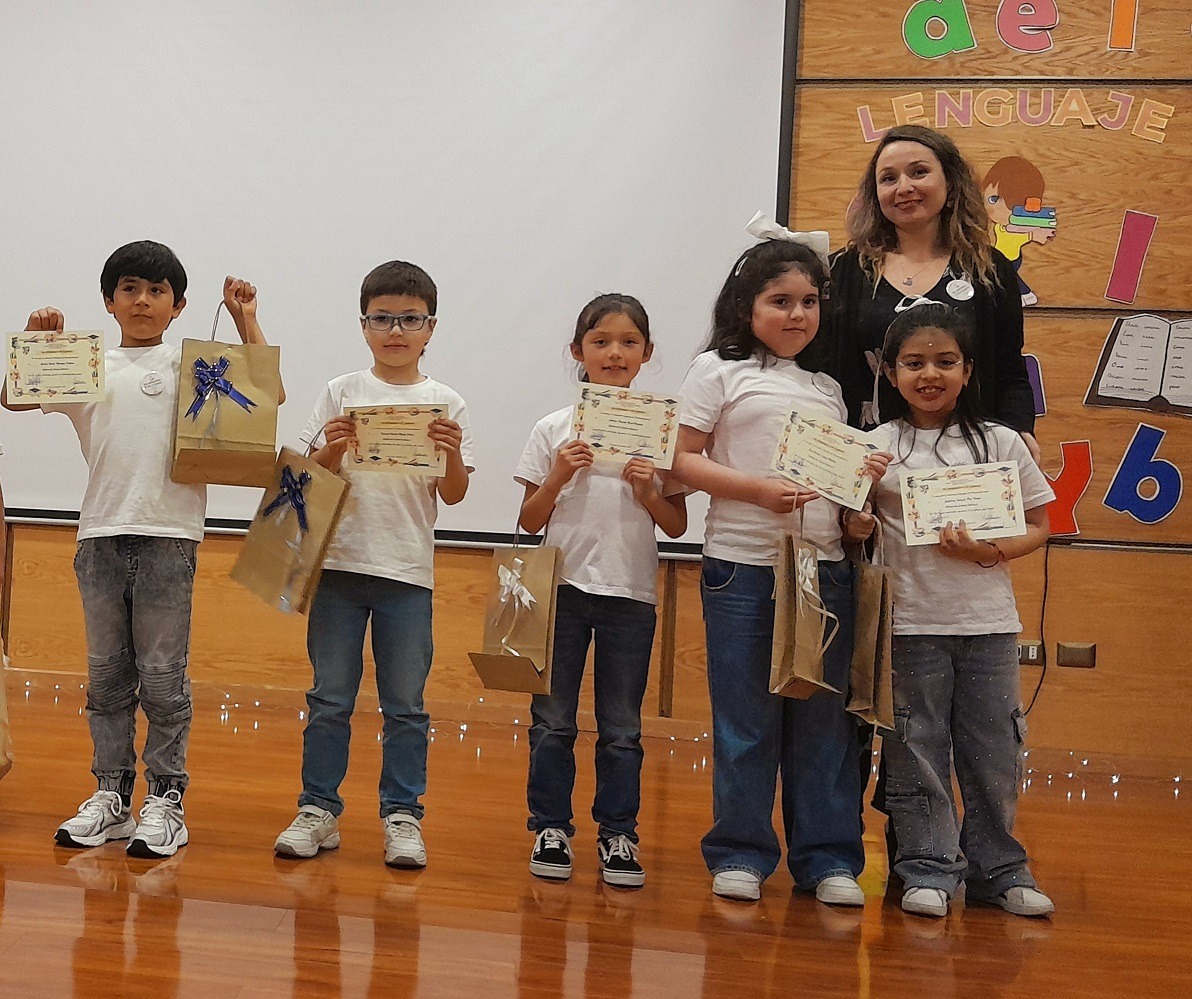 Ceremonia 1° año básico “Yo aprendo y te cuento” Ceremonia 1° año básico “Yo aprendo y te cuento” El día 27 de noviembre se realizó en el auditorio de nuestro establecimiento la ceremonia “Yo aprendo y te cuento”, en la cual participaron los alumnos de 1° año básico A y B acompañados de sus profesoras jefes: Camila Godoy y Belén Fuentes. En la ocasión se llevó a cabo un sentido reconocimiento al esfuerzo y dedicación de los estudiantes por avanzar en el aprendizaje de la lectura. Dicho proceso conforma un hito en la trayectoria escolar de cada uno de los alumnos, quienes utilizando la lectura como herramienta podrán acceder a diversas áreas del ámbito educativo como la literatura, la ciencia y las artes. En la ceremonia participaron también los padres y apoderados quienes con orgullo presenciaron el ejercicio lector adquirido por sus hijos, quienes en la ocasión leyeron diversos textos de asignaturas escolares. La ceremonia finalizó con nuestros estudiantes entonando la canción “Carnavalito de cien pies” de la autora chilena Carmen Lavanchy. 20251127_122841 Image 19 De 20