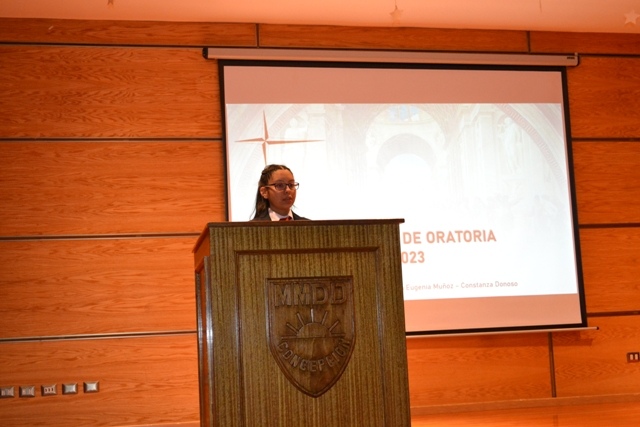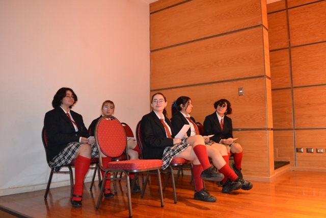 Primer desafío de oratoria en el marco del aniversario n°127 del colegio Carmela Romero de Espinosa. Evento organizado por el Departamento de Lenguaje. Instancia en que las alumnas dieron muestra de sus extraordinarias capacidades retóricas con discursos sobre las posibilidades de los jóvenes frente al cambio climático.