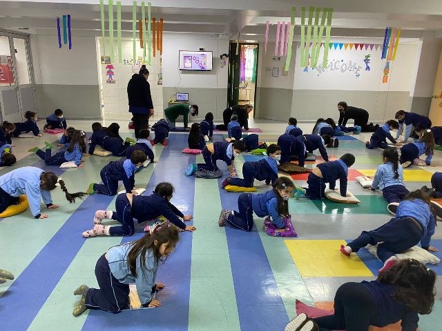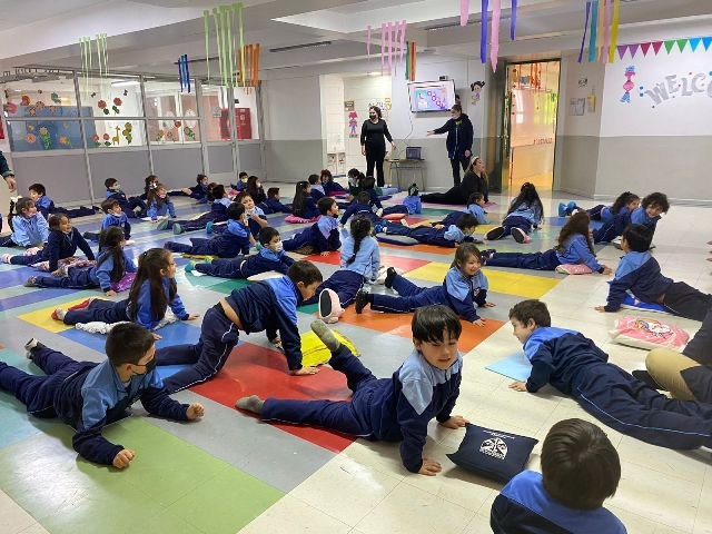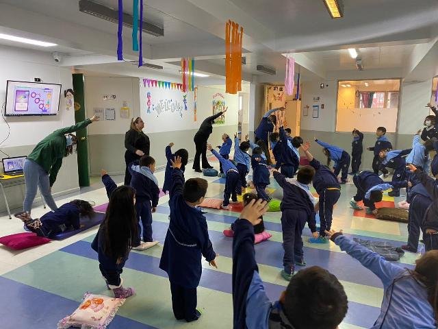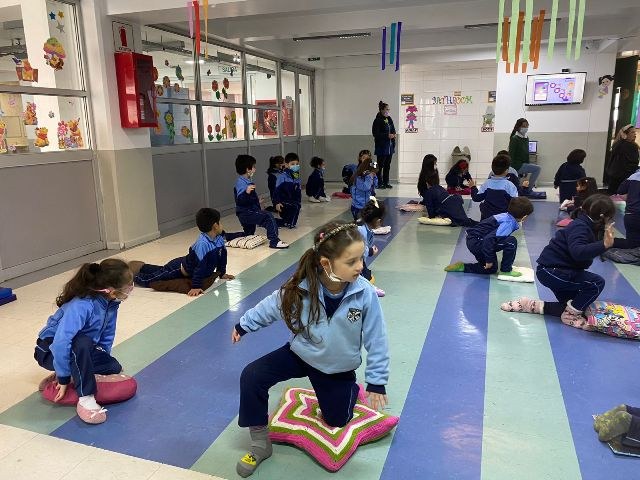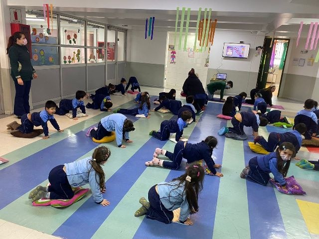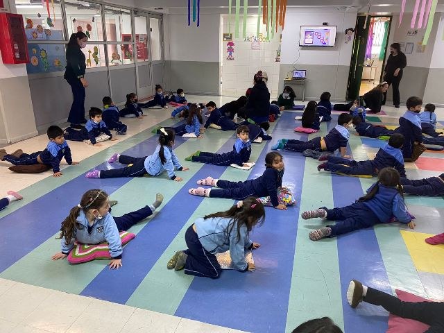 Día del yoga en nivel Educación Parvularia El Día Internacional del Yoga se celebra el 21 de junio, desde el 2014, fue propuesto por la ONU con el objetivo de dar a conocer los beneficios que aporta esta disciplina para nuestro cuerpo y mente. La práctica del yoga se presenta como una alternativa para combatir el estrés ya que aporta tranquilidad, flexibilidad, conocimiento de nosotros mismos y paz interior. La práctica del yoga para niños proporciona numerosos beneficios, entre estos, mejora la postura, calma y relajación, concentración y diversión, debido a que cada postura se asocia a un animal o a un elemento natural, por lo que los niños se divertirán imitando a la rana, al cisne, entre otros. Los estudiantes de Kínder y Prekínder el día martes 20 de junio participaron de una clase de yoga para niños a cargo de sus Educadoras de Párvulos, en la cual realizaron diversas posturas como la serpiente, el perro, la rana entre otras. Además de practicar técnicas de relajación y respiración. 12►