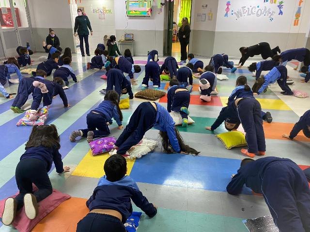 Día del yoga en nivel Educación Parvularia El Día Internacional del Yoga se celebra el 21 de junio, desde el 2014, fue propuesto por la ONU con el objetivo de dar a conocer los beneficios que aporta esta disciplina para nuestro cuerpo y mente. La práctica del yoga se presenta como una alternativa para combatir el estrés ya que aporta tranquilidad, flexibilidad, conocimiento de nosotros mismos y paz interior. La práctica del yoga para niños proporciona numerosos beneficios, entre estos, mejora la postura, calma y relajación, concentración y diversión, debido a que cada postura se asocia a un animal o a un elemento natural, por lo que los niños se divertirán imitando a la rana, al cisne, entre otros. Los estudiantes de Kínder y Prekínder el día martes 20 de junio participaron de una clase de yoga para niños a cargo de sus Educadoras de Párvulos, en la cual realizaron diversas posturas como la serpiente, el perro, la rana entre otras. Además de practicar técnicas de relajación y respiración. ◄12