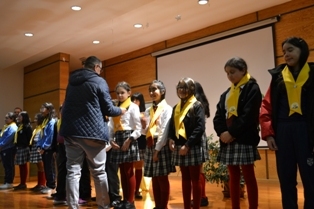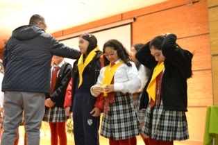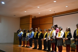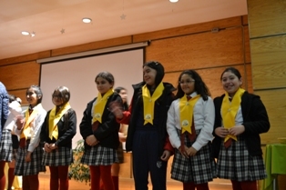 Entrega de Pañolines El jueves recién pasado las “Comunidades Veritas” y las Comunidades de Catequesis, recibieron sus pañolines en una Ceremonia en la que participaron niños y niñas de los distintos grupos, como así también los padres y apoderados que pudieron participar en ese horario. Cada Comunidad cuenta con un pañolín de diferente color, y símbolos que los identifican de manera particular, sellando con ello un signo de pertenencia, y adhesión al proyecto pastoral de nuestra Institución. ◄123