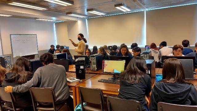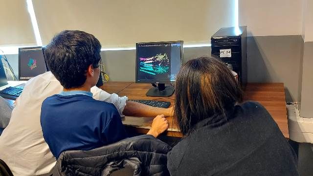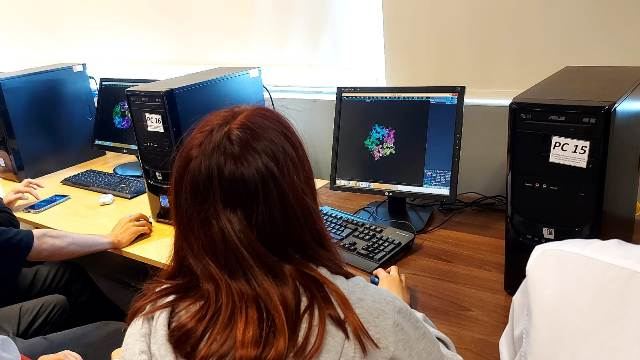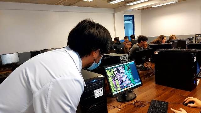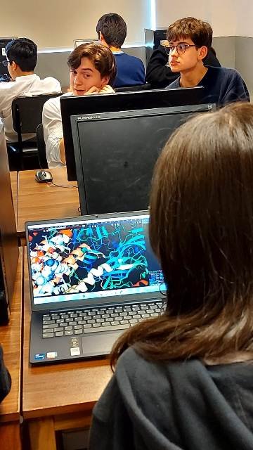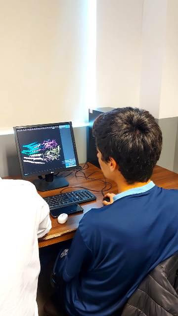 Estructuras de Proteínas en PyMoL Actividad y laboratorio computacional de “Estructuras de proteínas en PyMOL” organizada por el Departamento de Ciencias del Colegio Madres Dominicas y realizada el 30 de noviembre del 2022 por el Bioingeniero y candidato a Magister de Neurobiología de la Universidad de Concepción Santiago Quintana, quien realizó una entretenida actividad práctica con los estudiantes pertenecientes a las asignaturas de Biología Celular y Molecular de tercero medio A y B donde pudieron visualizar las estructuras, enlaces y uniones atómicas de una proteína. ◄12