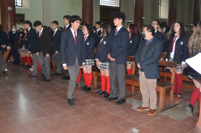 Eucaristía 4° Medios 2022 El miércoles pasado, los estudiantes de Cuarto Medio, se congregaron en el Templo Santo Domingo, para dar gracias a Dios por el camino recorrido, junto a sus familias en la Eucaristía correspondiente a la finalización del proceso que como estudiantes han vivido en nuestro colegio. En la oportunidad, los jóvenes recibieron la Cruz Dominicana, que simboliza el Amor que Dios nos tiene y que sobrepasa todo pensamiento; como así también la Misión que les corresponde a cada uno y a la cual siempre estarán llamados para “Saber más y servir mejor”, en los distintos lugares y ambientes en los que se encuentren. 12►