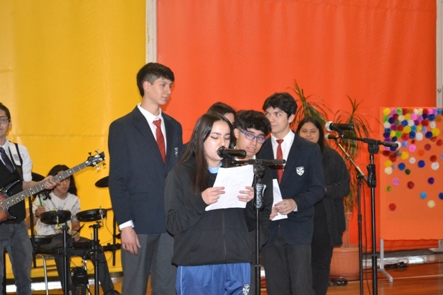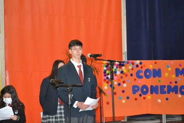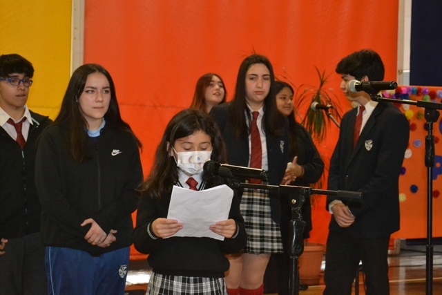 Inicio Mes de María 2022 Hoy 8 de noviembre, en comunión con toda la Iglesia, hemos iniciado el Mes de María, cuyo lema propuesto es: “Con María nos ponemos en camino”. En este día, estudiantes desde 3° básico a 3° medio, participaron de la Liturgia, en la que cantaron, representaron un episodio de María y recibieron los altares que usarán en cada curso, junto al librito de oraciones correspondiente al mes. Los niños y jóvenes, disfrutaron ver a sus compañeros, siendo los protagonistas de la acción litúrgica de inicio del Mes de María. ◄12