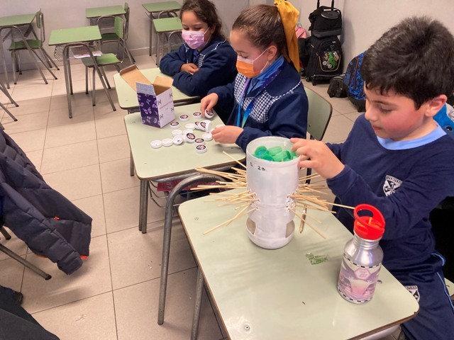 Juegos con materiales reciclados Los materiales reciclados pueden ayudar a los más pequeños desarrollar su imaginación y a fomentar su creatividad, además de aumentar su concentración y los niveles y tiempos de atención, mediante acciones concretas y específicas que requieren gran delimitacion. Es por esto que los segundos básicos presentan micropoyecto en la asignatura de tecnología llamada “ juegos de mesa con material reciclado”.