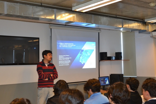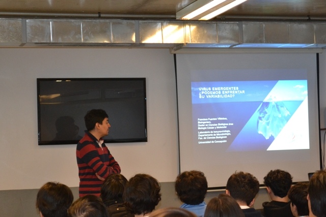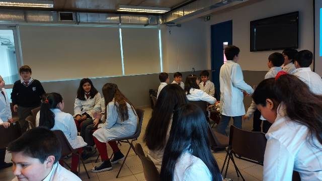 Mes de la Ciencia 2023 Durante el mes de octubre en el marco del mes de la ciencia, se realizaron diferentes actividades con el fin de acercar las ciencias con la comunidad escolar las que permiten la participación entre profesionales y estudiantes del colegio Madres Dominicas, Concepción; para lo cual se efectuaron las siguientes actividades: Exposición de trabajos de alumnos en las diferentes asignaturas científicas. (alumnos de 5 básico a 4 Medio). Charla “Agujeros negros y la ilusión del tiempo” a cargo de Prof Octavio Fierro M en UCSC, asistieron algunos alumnos de 4 medio B. Talleres área Física en Mecánica, electromagnetismo y ondas en laboratorios de Física de UCSC, fueron alumnos de 4 B Charla Prevención Tabaquismo para 5 a y b, a cargo de SENDA para conocer los efectos nocivos que produce el cigarrillo (humo de tabaco) en los sistemas del cuerpo humano. Taller Drogas y su comportamiento en nuestro cuerpo y en las células, a cargo de Prof Paul Soto O (estudiante doctorado UdeC) y Santiago Quintana H (Dr en ciencias biológicas, U de C) Taller Visualización de proteínas en Pymol y fármacos, para alumnos de biología celular y química electivo de 3 medio A y B a cargo de Prof Paul Soto O (estudiante doctorado U de C) y Santiago Quintana H (Dr en ciencias biológicas, U de C) , comprender mediante un software especializado la visualización proteica y los conceptos de estructura proteica, enlaces, interacciones y canales iónicos Charla Magistral de Virus, para alumnos de biología celular y química electivo y probabilidades de 3 medio A y B a cargo de Prof- Francisco Fuentes V (Dr en ciencias biológicas, área biología celular y molecular), U de C Actividad experimental “creación de Slime”, alumnos de 1 básico con ayuda de alumnos del electivo de química de 3 medio. 123►