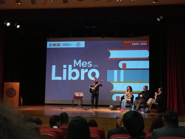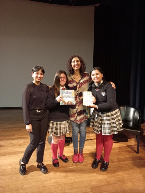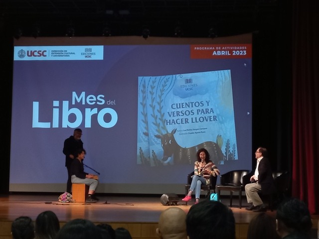 Presentación Libro “Cuentos y versos para hacer llover” El día martes 04 de abril se llevó a cabo la presentación del libro “Cuentos y versos para hacer llover” de la autora Luz Marina Vergara. La actividad, llevada a cabo en el Teatro del Centro de Extensión de la Universidad Católica de la Santísima Concepción, contó con la presentación del libro por el profesor Lester Aliaga, la presentación del proceso ilustrativo por el artista Freddy Agurto, la musicalización de cuentos por el cantautor Frederick Luna y la lectura en voz alta de algunos cuentos del texto por la autora Luz Marina Vergara. A la actividad asistieron como delegación las estudiantes de tercero y cuarto medio, srtas. Isabella Zwetajeff, Valentina Meza y Sofía Triviños, acompañadas por la Encargada de Biblioteca, profesora Constanza Donoso.