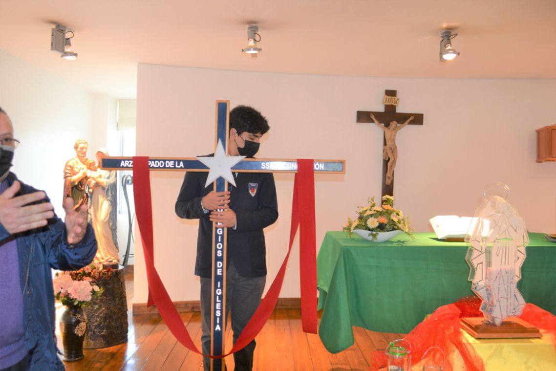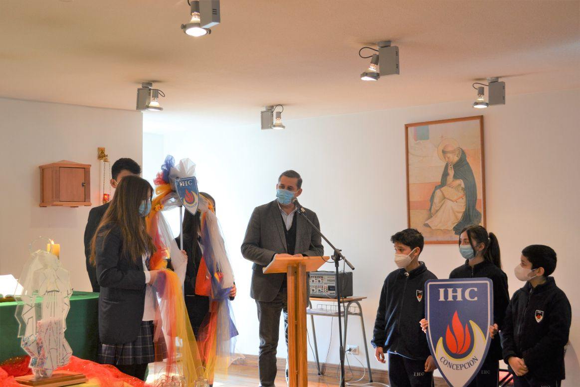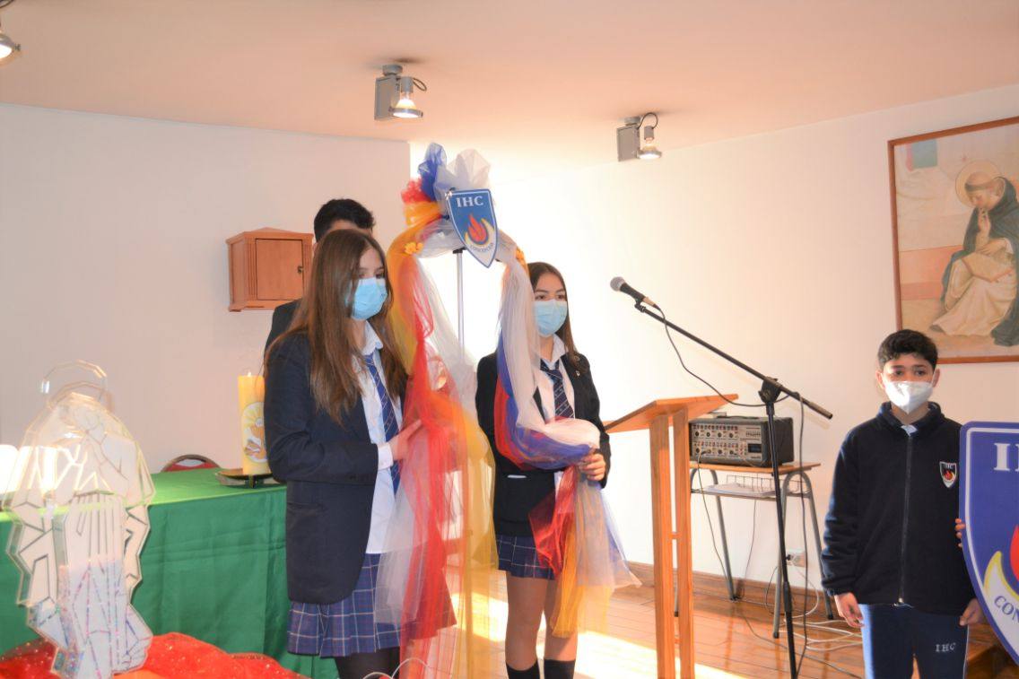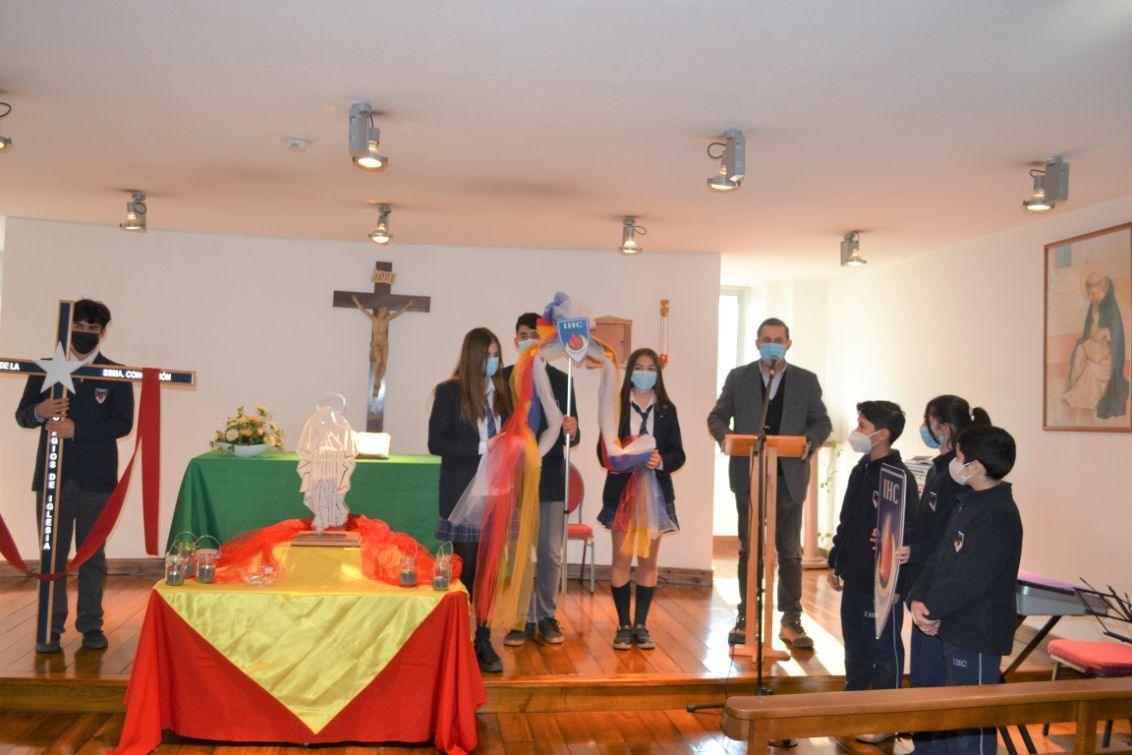 “Virgen Peregrina” visita a nuestro Colegio En el presente año, la imagen de la “Virgen Peregrina” ha estado visitando los colegios de la Arquidiócesis de Concepción, ya ha visitado los colegios de las comunas de Cañete, Lota, coronel, San Pedro de la Paz, Chiguayante, Santa Juana y ahora se encuentra en la Comuna de Concepción, para luego seguir peregrinando por Talcahuano, Hualpén, Cabrero y Yumbel. Nuestro colegio recibió la Imagen de manos de estudiantes y docentes del colegio Instituto Humanidades de Concepción, en el día de hoy, y la “Virgen Peregrina”, nos acompañará hasta el día martes 04 de octubre, momento en el que tendremos que llevarla a Colegio Salesianos. Nuestro programa, contempla la visita de Docentes en el día de hoy, además de cursos, Comunidades Pastorales, Grupo Scout, niños y niñas de pre básica, como así también de todos quienes quieran ir a visitarla para depositar su intención particular. 12►