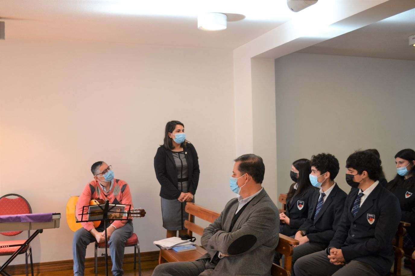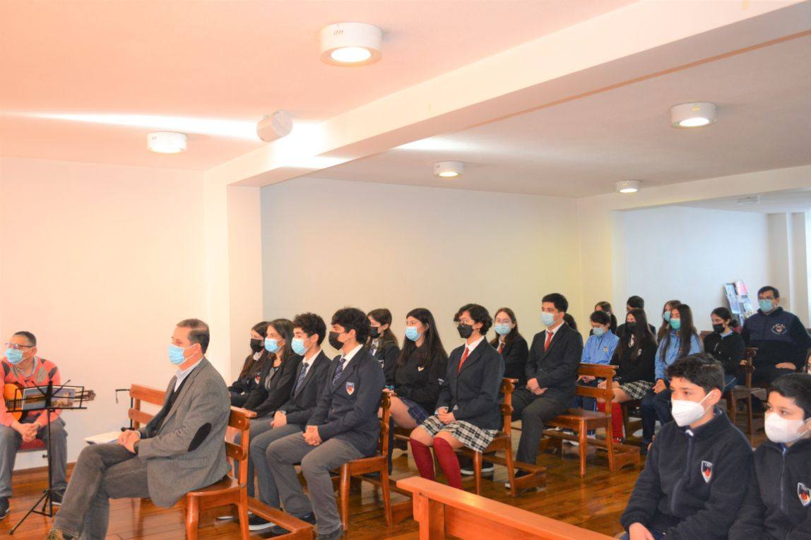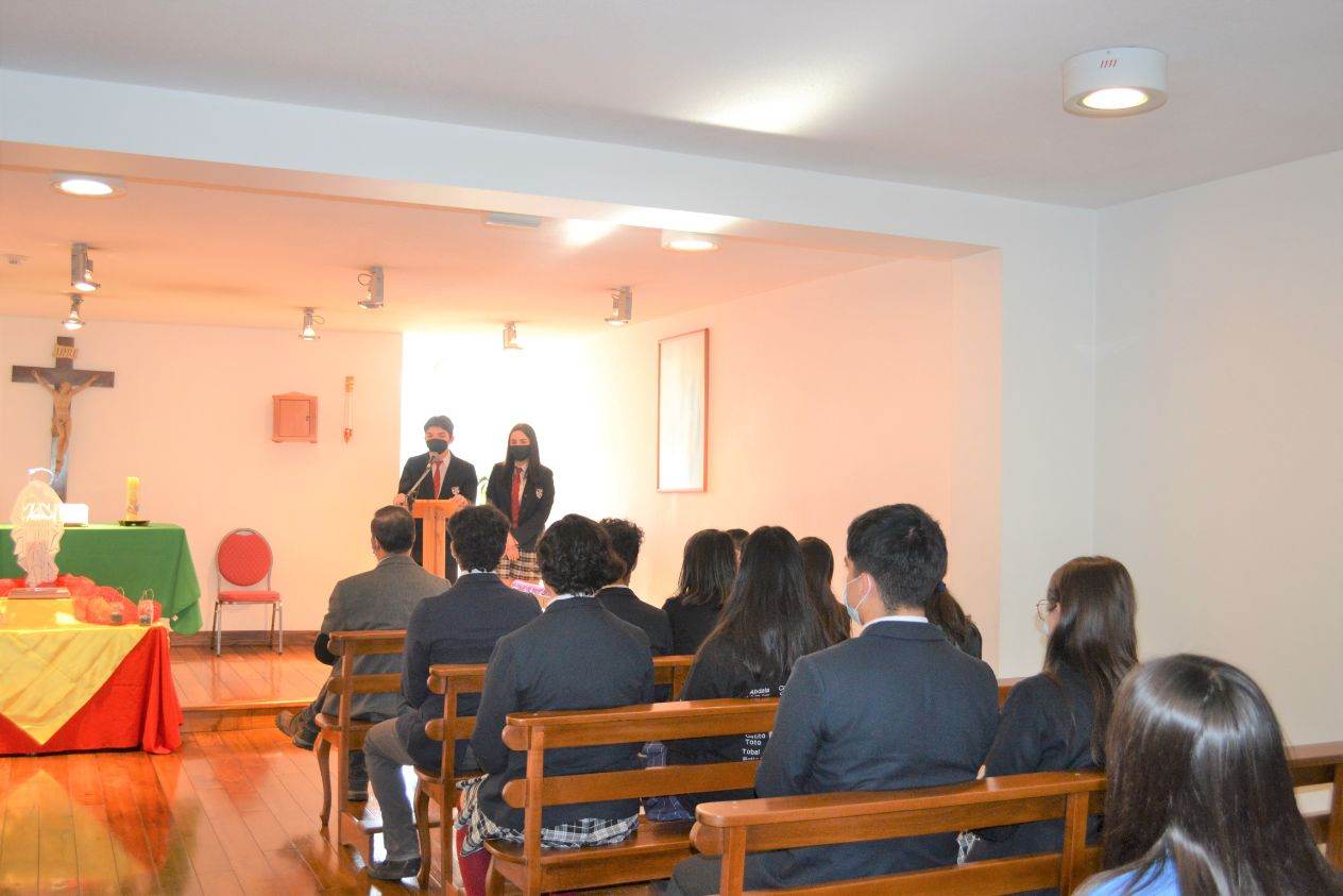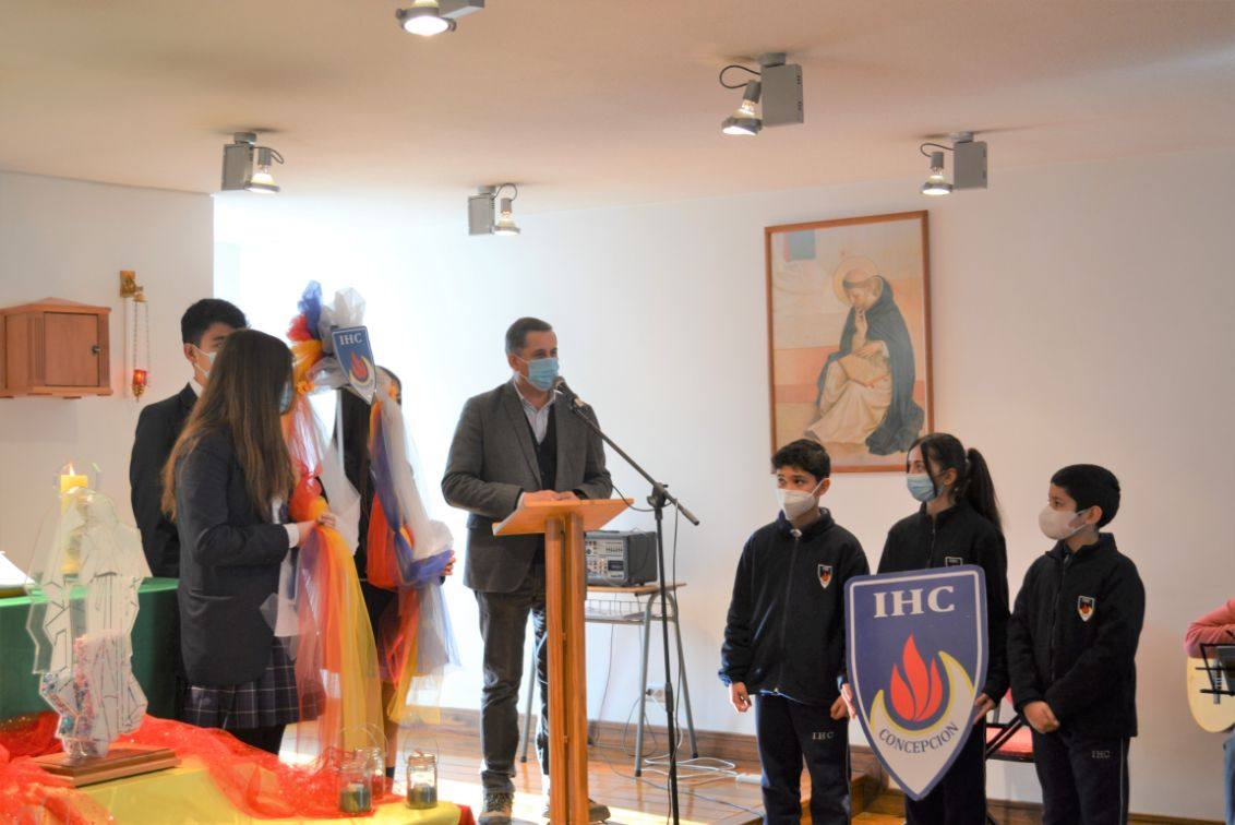 “Virgen Peregrina” visita a nuestro Colegio En el presente año, la imagen de la “Virgen Peregrina” ha estado visitando los colegios de la Arquidiócesis de Concepción, ya ha visitado los colegios de las comunas de Cañete, Lota, coronel, San Pedro de la Paz, Chiguayante, Santa Juana y ahora se encuentra en la Comuna de Concepción, para luego seguir peregrinando por Talcahuano, Hualpén, Cabrero y Yumbel. Nuestro colegio recibió la Imagen de manos de estudiantes y docentes del colegio Instituto Humanidades de Concepción, en el día de hoy, y la “Virgen Peregrina”, nos acompañará hasta el día martes 04 de octubre, momento en el que tendremos que llevarla a Colegio Salesianos. Nuestro programa, contempla la visita de Docentes en el día de hoy, además de cursos, Comunidades Pastorales, Grupo Scout, niños y niñas de pre básica, como así también de todos quienes quieran ir a visitarla para depositar su intención particular. 12►