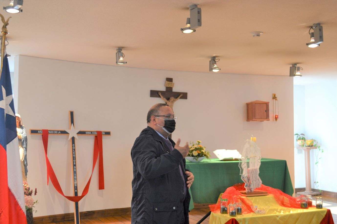 “Virgen Peregrina” visita a nuestro Colegio En el presente año, la imagen de la “Virgen Peregrina” ha estado visitando los colegios de la Arquidiócesis de Concepción, ya ha visitado los colegios de las comunas de Cañete, Lota, coronel, San Pedro de la Paz, Chiguayante, Santa Juana y ahora se encuentra en la Comuna de Concepción, para luego seguir peregrinando por Talcahuano, Hualpén, Cabrero y Yumbel. Nuestro colegio recibió la Imagen de manos de estudiantes y docentes del colegio Instituto Humanidades de Concepción, en el día de hoy, y la “Virgen Peregrina”, nos acompañará hasta el día martes 04 de octubre, momento en el que tendremos que llevarla a Colegio Salesianos. Nuestro programa, contempla la visita de Docentes en el día de hoy, además de cursos, Comunidades Pastorales, Grupo Scout, niños y niñas de pre básica, como así también de todos quienes quieran ir a visitarla para depositar su intención particular. ◄12